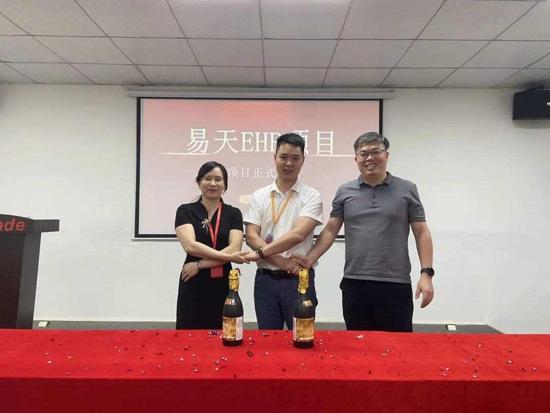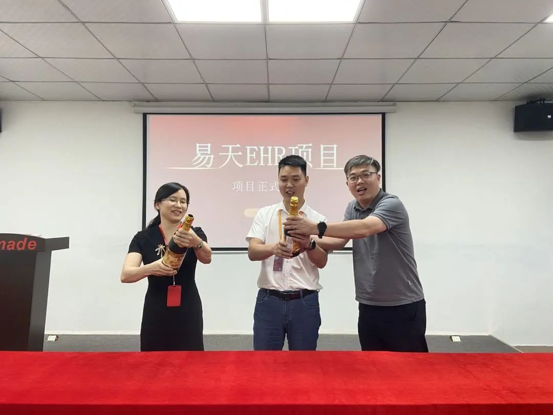 议程最后,由万达宝华南区负责人江总、财务总监刘总、副总经理张总共同打开象征着庆祝与欢乐的香槟礼花,随着礼花的喷洒而出,永利yl23411人力资源管理项目已正式拉开帷幕。